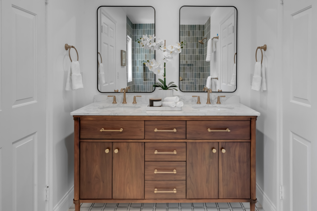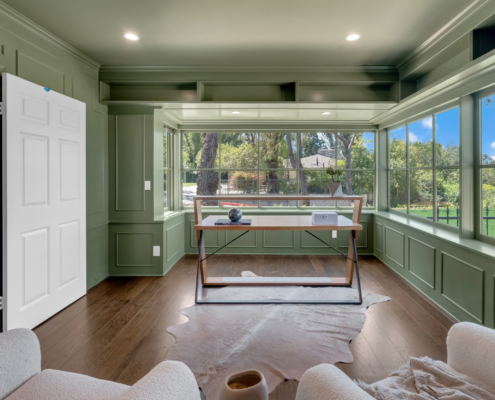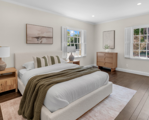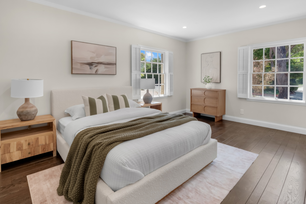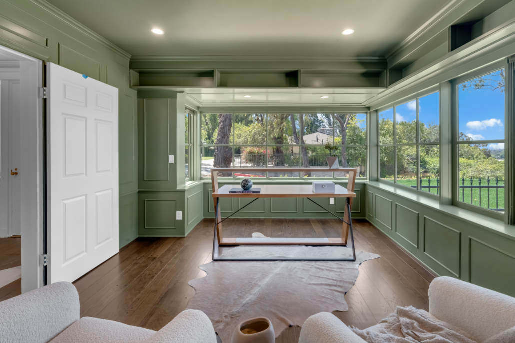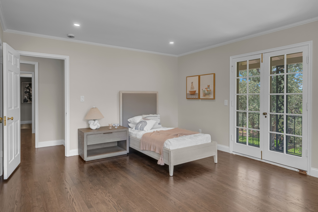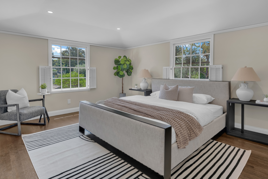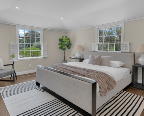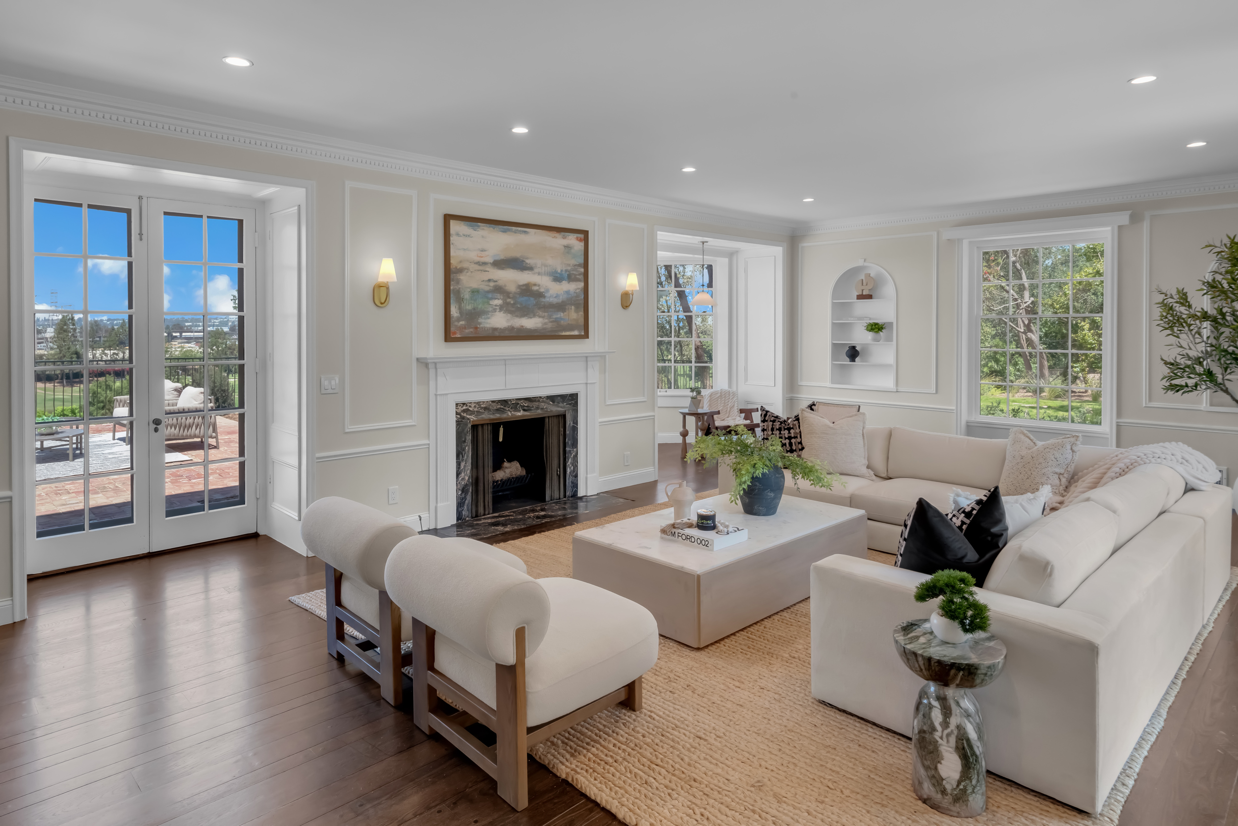 The Clock House is a showcase of refined architectural heritage, blending Kirtland Cutter’s signature design touch with meticulous modern upgrades. A rare convergence of Colonial, English, and Spanish Revival influences, the home’s exterior is a study in symmetry and restraint—with painted brickwork, black shutters, and wrought-iron balcony accents offering a classic, dignified street presence.