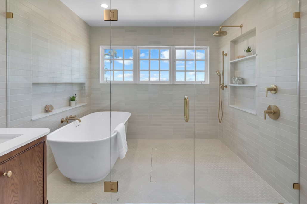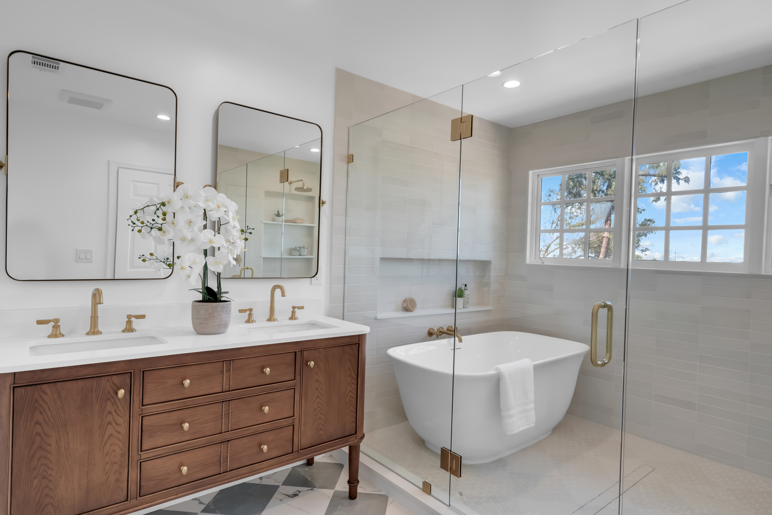The open-concept kitchen and dining area serve as the heart of the home, thoughtfully remodeled with a center island, brass fixtures, custom cabinetry, and a charming built-in breakfast nook. Everywhere you look—curved bay windows, arch-top shelving, and sophisticated lighting—there’s a reverence for craftsmanship and proportion.